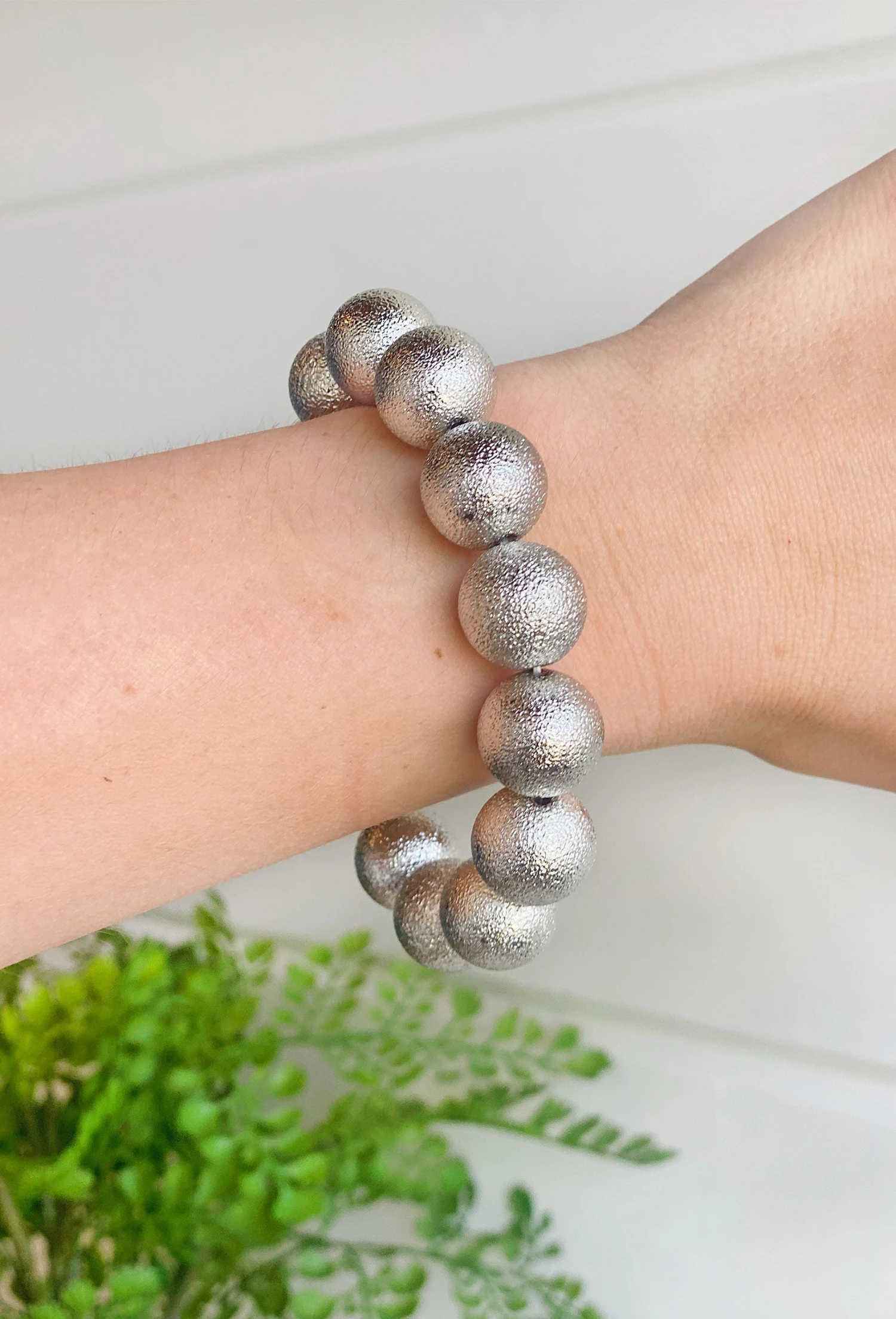 Introducing the All Eyes On You Bracelet! This beautiful silver ball beaded bracelet is perfect for stacking with your favorite bracelets. The chunky beads add a touch of fun and style to any outfit. Whether you’re dressing up for a special occasion or just heading out for a night on the town, this bracelet is sure to turn heads.