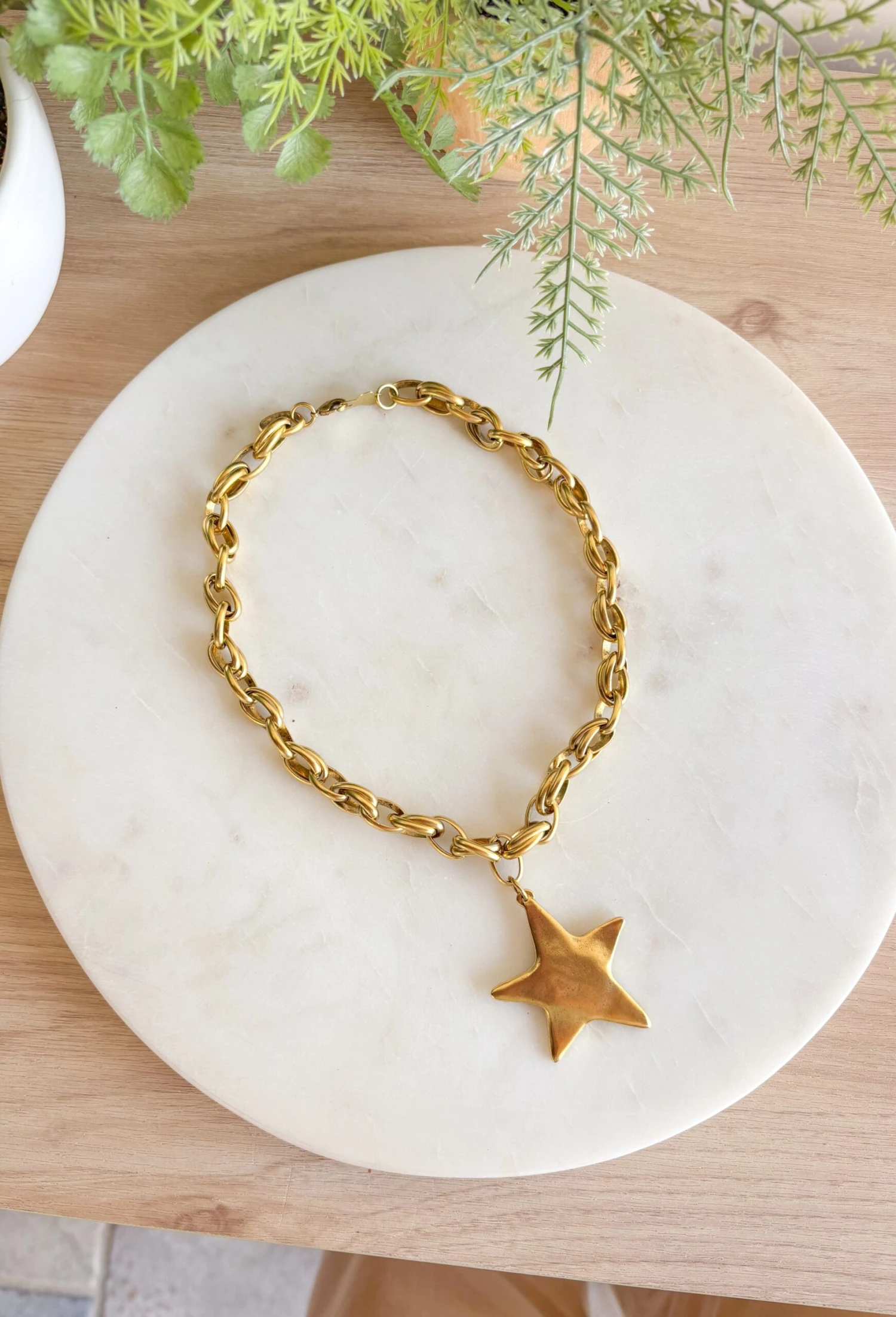 Shine like the star you are with this bold and beautiful necklace from Bracha! Featuring a chunky, high-shine woven chain and a vintage-inspired antique gold star pendant, this piece brings charm to any outfit. Whether you’re layering it up or letting it fly solo, itβs an instant outfit-maker and total crowd-pleaser.