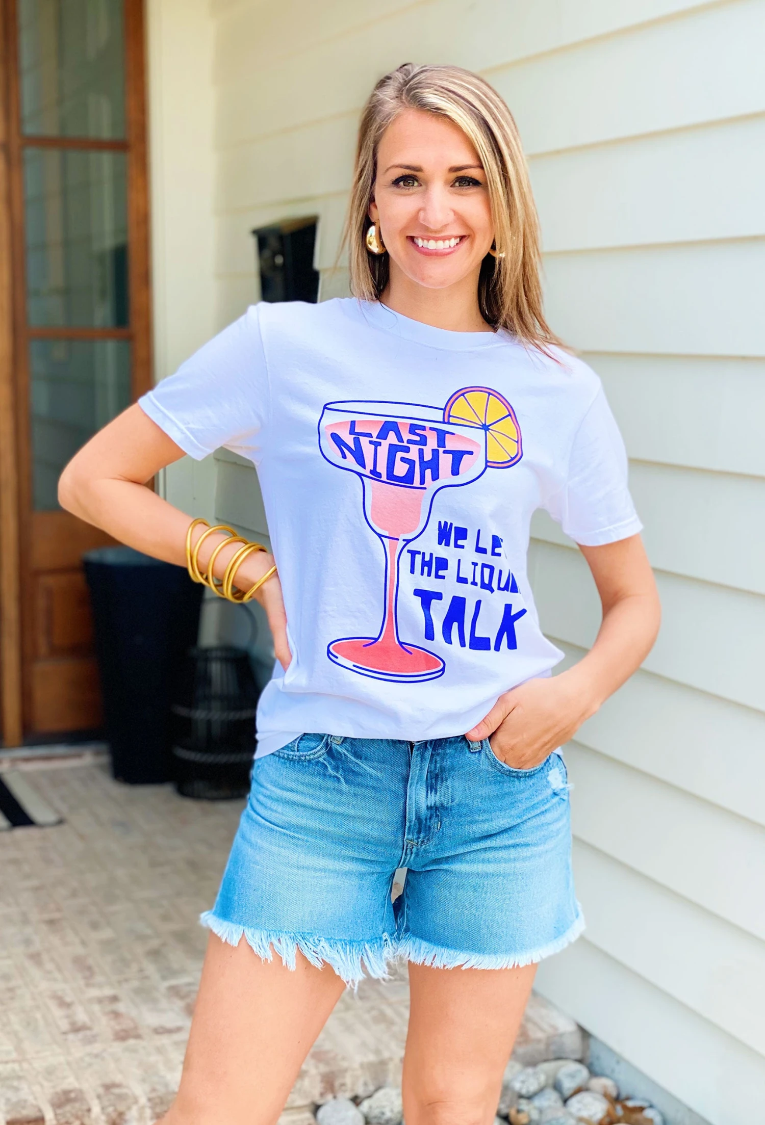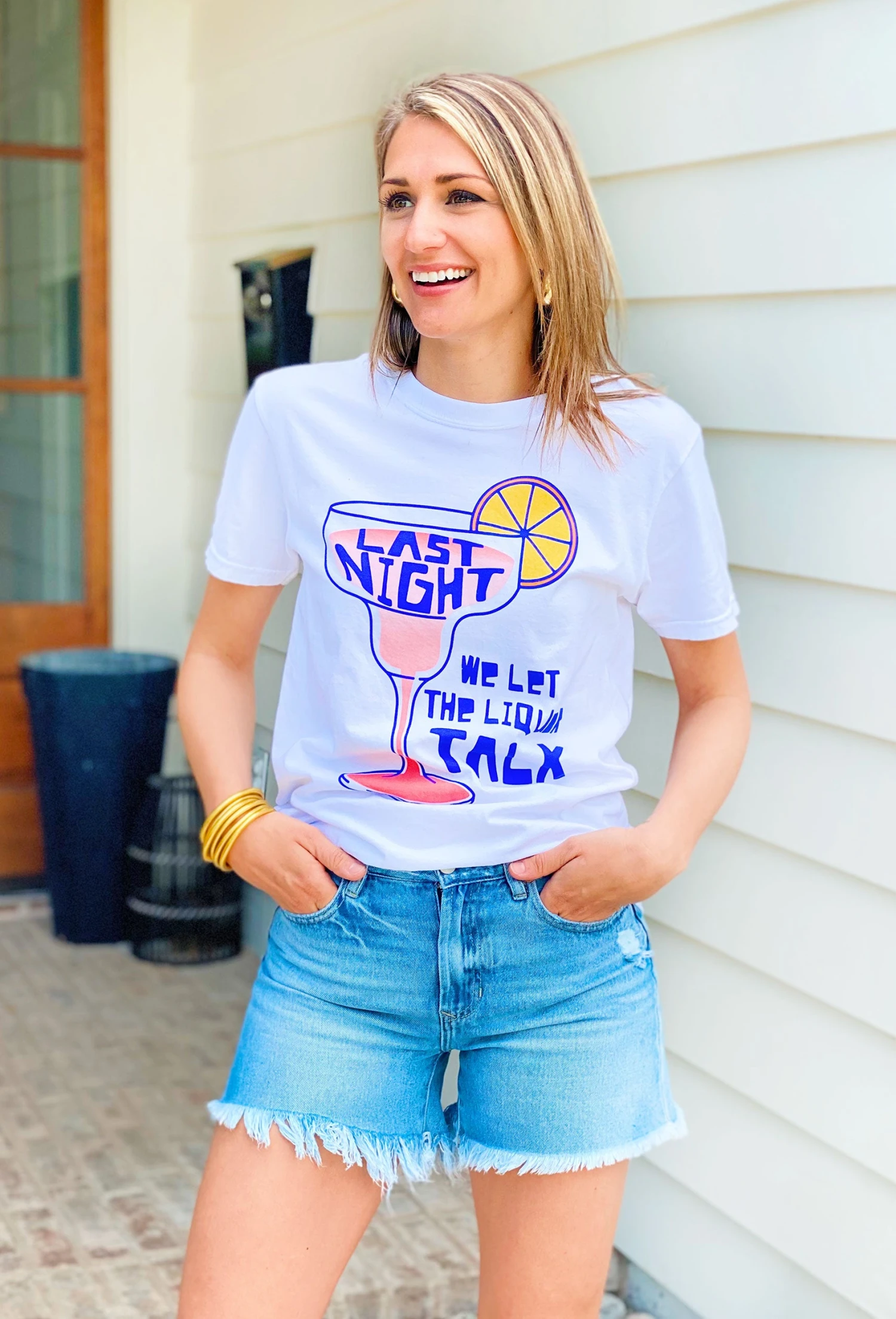 This one is for those of us who have ever let the liquor talk when maybe we shouldn’t have… Featuring a lyric from one of our favorite country songs, you know the one, this tee is an ode to the nights we don’t remember with the people we will never forget! We won’t be forgetting this tee anytime soon either!