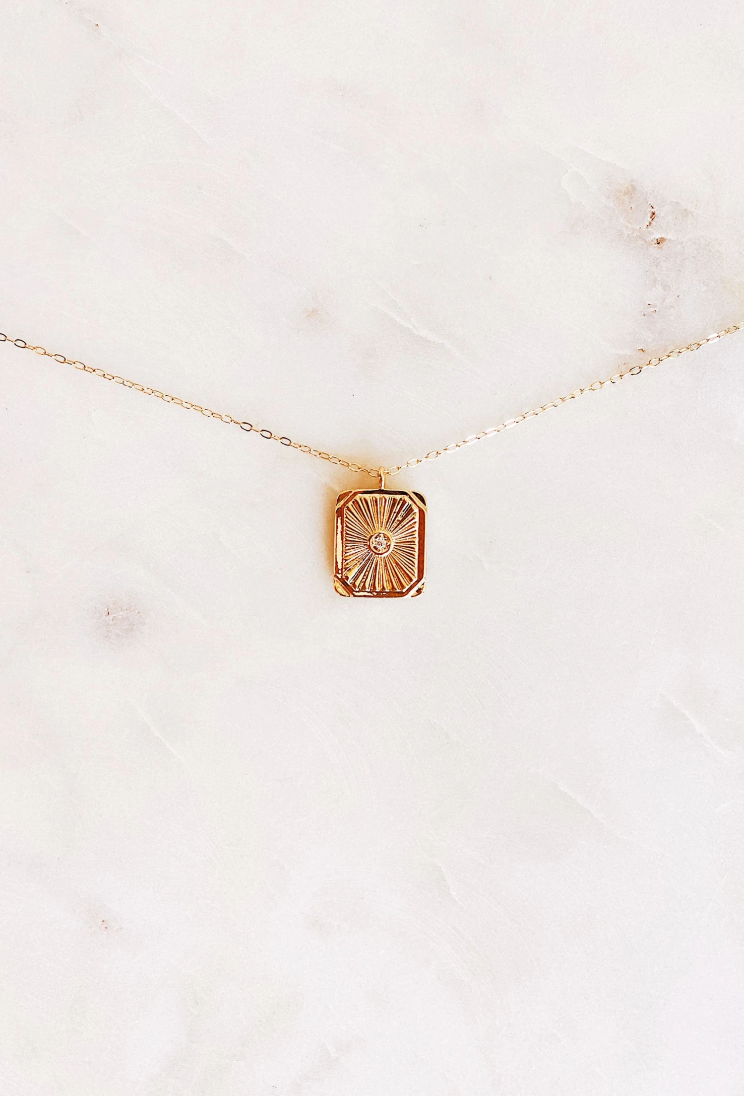 There is no reason why everyday jewelry can’t be precious in our eyes.Β A subtle, sparkly charm adds just the right amount of shine to any outfit you desire.Β An everyday necklace with a crystal radiating on a gold card charm.Β An adjustable chain encourages customization.