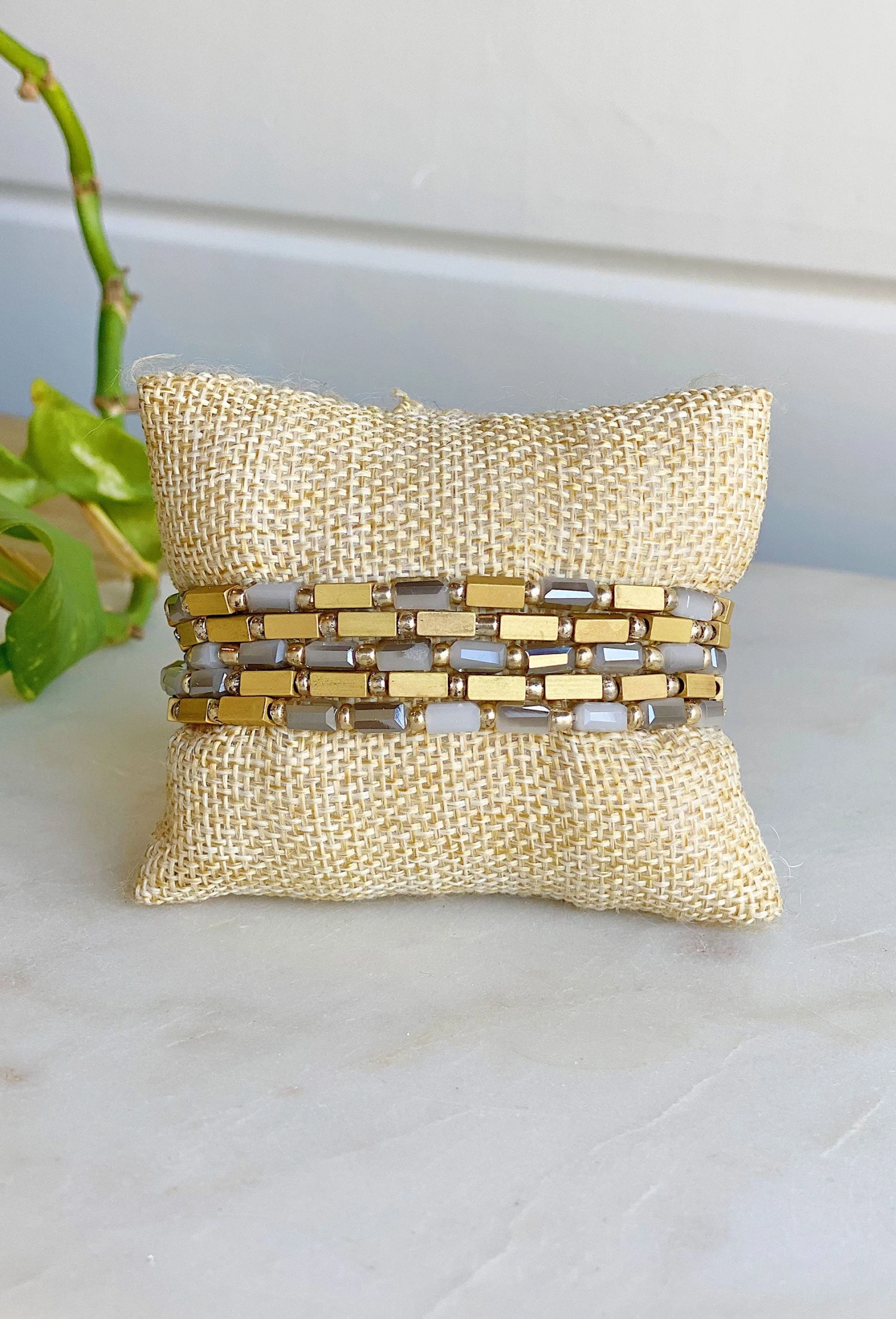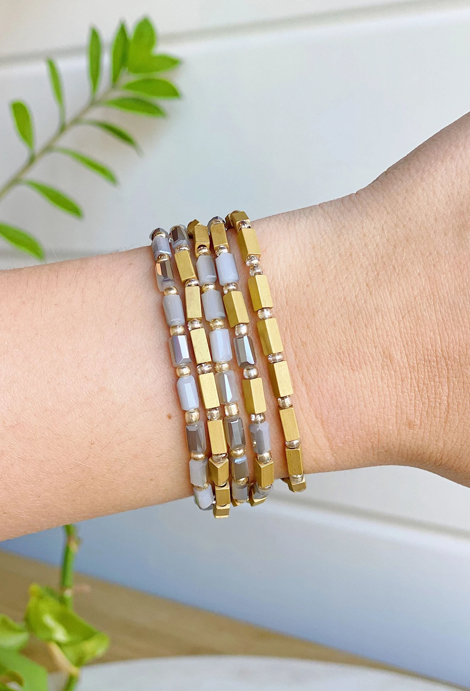 Introducing the Daphne Beaded Bracelet Set – a beautiful set of five multi color rectangle beads that are perfect for fall. With a mix of neutral tones, these bracelets are perfect for layering and add a touch of style to any outfit. Whether you’re dressing up for a special occasion or just heading out for a casual day, these bracelets add a touch of class and sophistication.