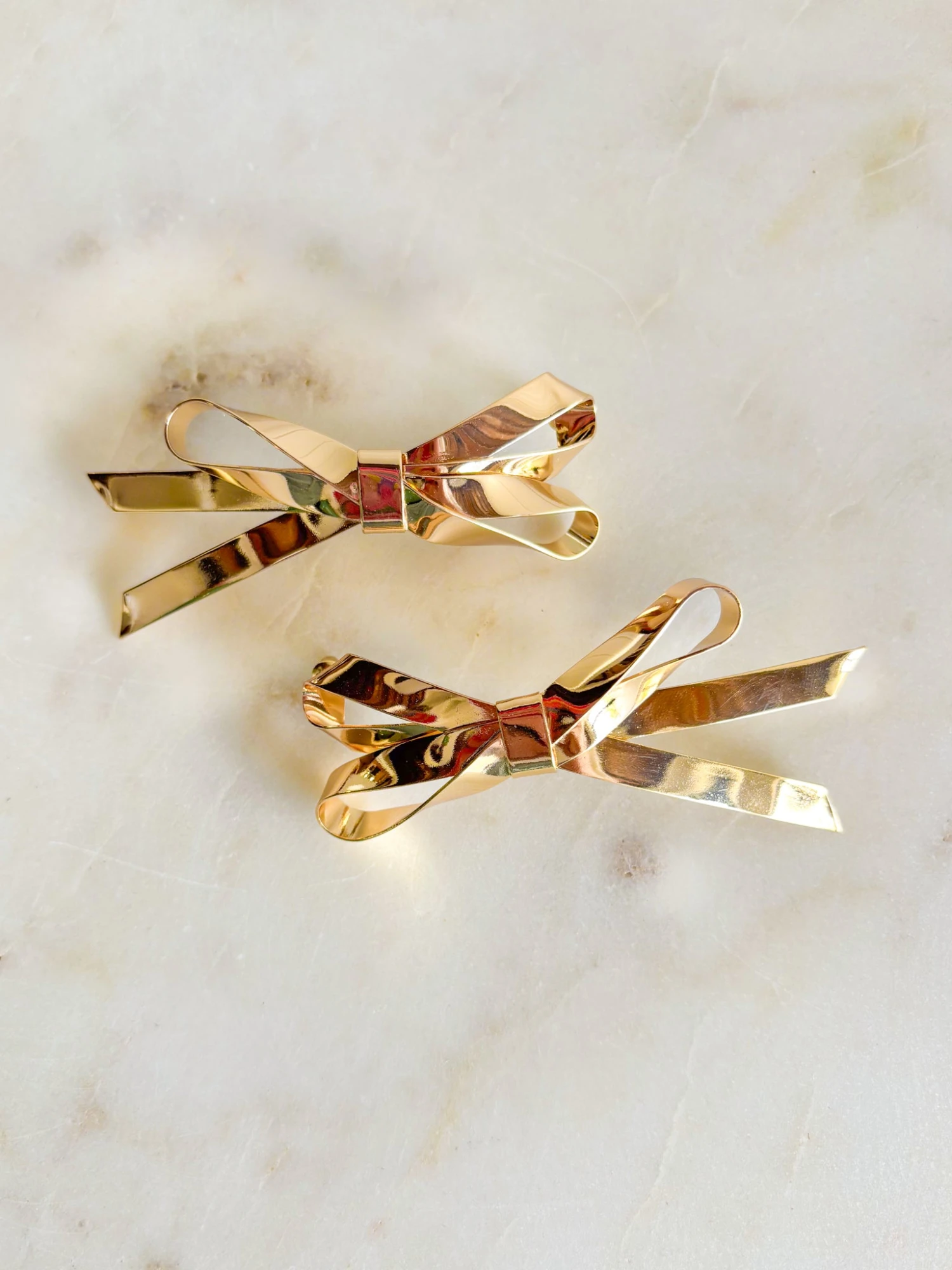 Upgrade your style with our statement gold bow earrings, the perfect accessory to elevate any outfit! Add a touch of glamour and make a statement.