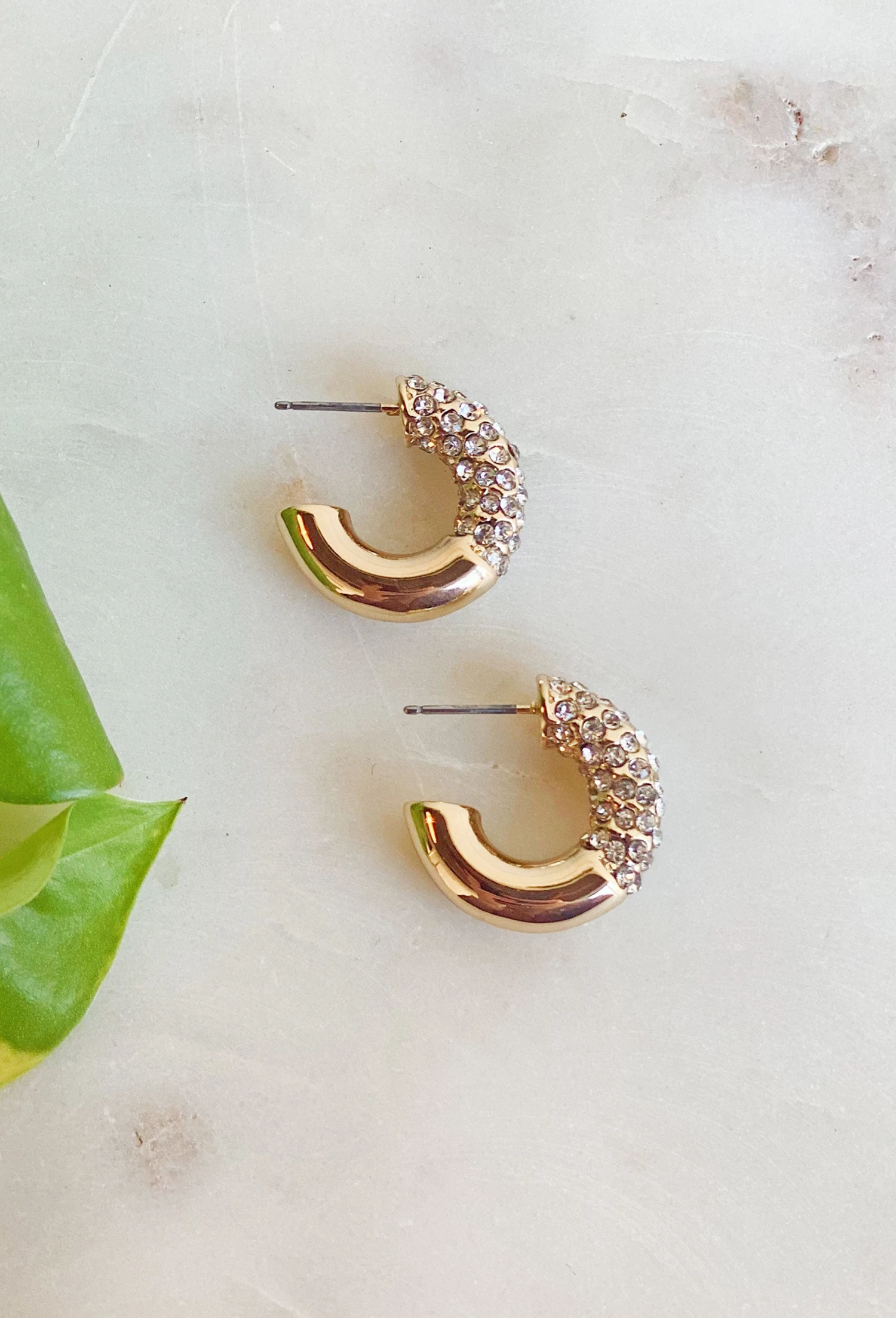 Introducing the It Girl Hoop Earrings! These pretty earrings are perfect for any outfit, whether you’re dressing up or dressing down. They feature a mini thick gold hoop with pave crystal details. They’re just the right amount of sparkle and shine, and they’ll add a touch of elegance to any look. Whether you’re headed to the office or out on the town, these earrings are sure to turn heads. So go ahead and treat yourself (or someone special) to a pair of these gorgeous earrings.