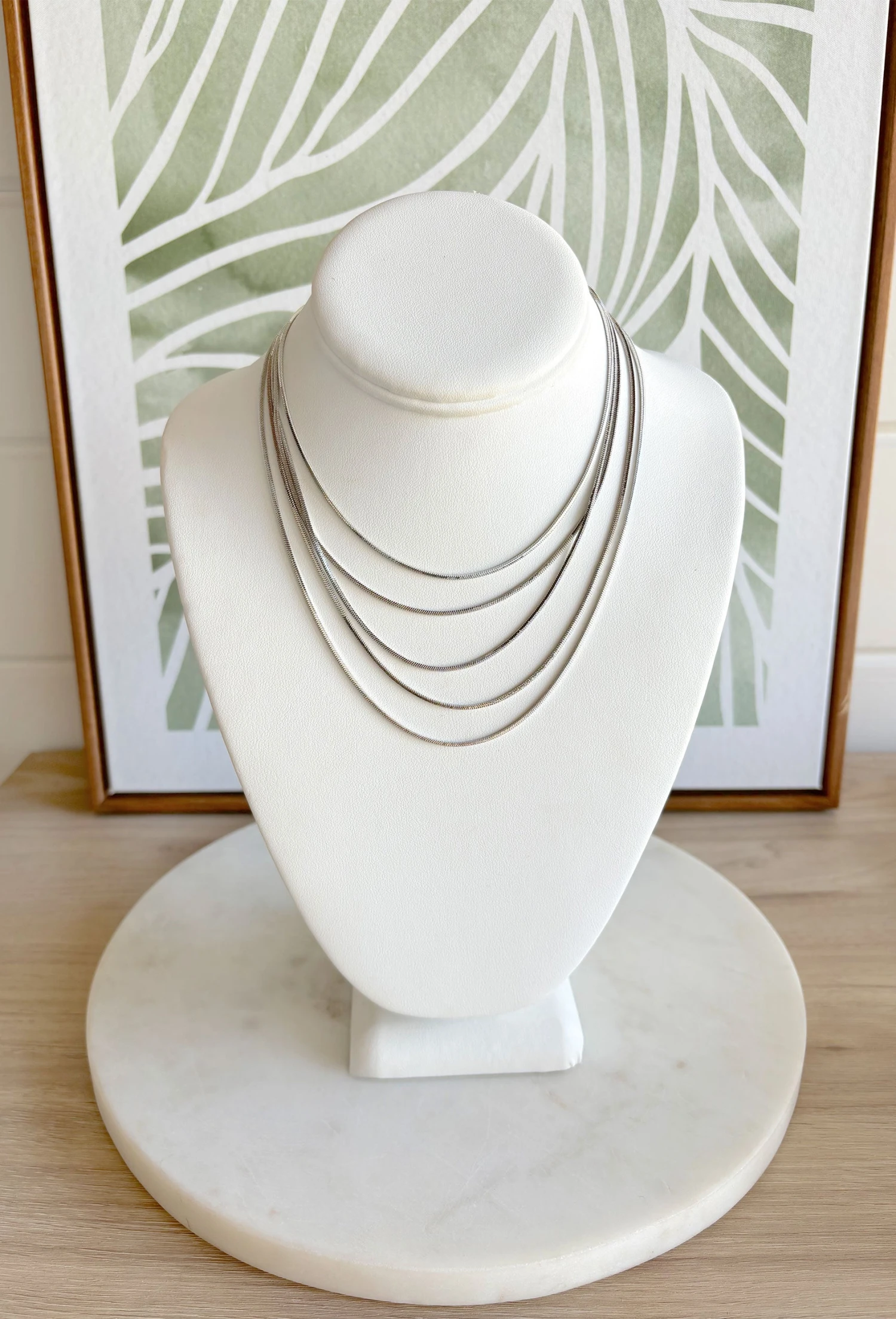 Elevate your look with the timeless Jasmine Layered Chain Necklace. This layered silver chain statement piece is a must have!