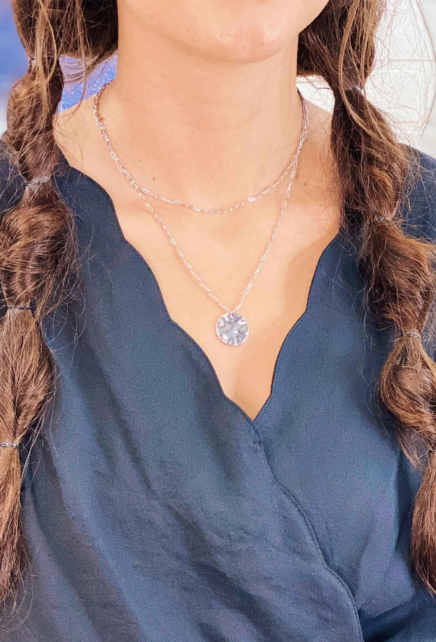 Love the layered look? Instead of searching high and low for a pair of necklaces that work perfectly together, try this clever all-in-one style. Instant chic! Countless style options are available to you when you have this must-have necklace. It’s the perfect finishing touch to your street-style look. Enjoy two necklaces in one! Featuring two dainty chains with coin detail.