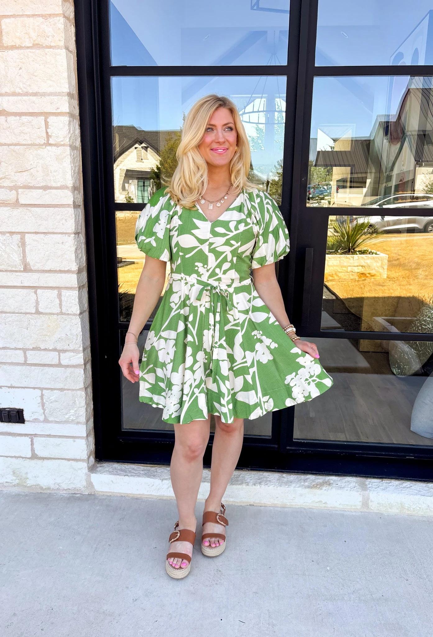 Timeless and effortlessly chic, this green dress with an off-white floral print is the perfect blend of elegance and charm. Designed with a flattering flowy skirt, puff sleeves, and a matching belt tie closure, this dress offers a beautifully feminine silhouette. Fully lined for comfort and crafted by Entro from a breathable rayon-nylon blend, it’s perfect for date nights, special occasions, or brunch with friends. Pair it with heels for a dressy vibe or flats for a more relaxed look.
