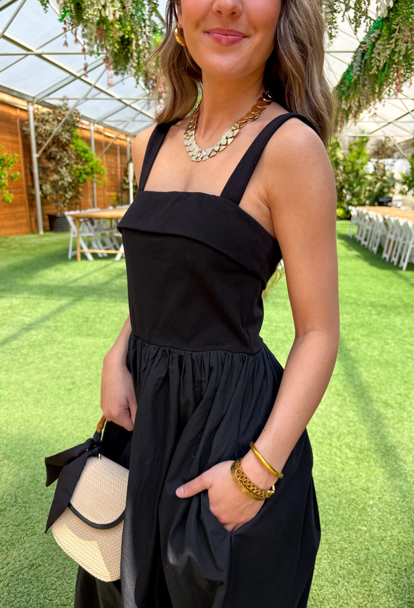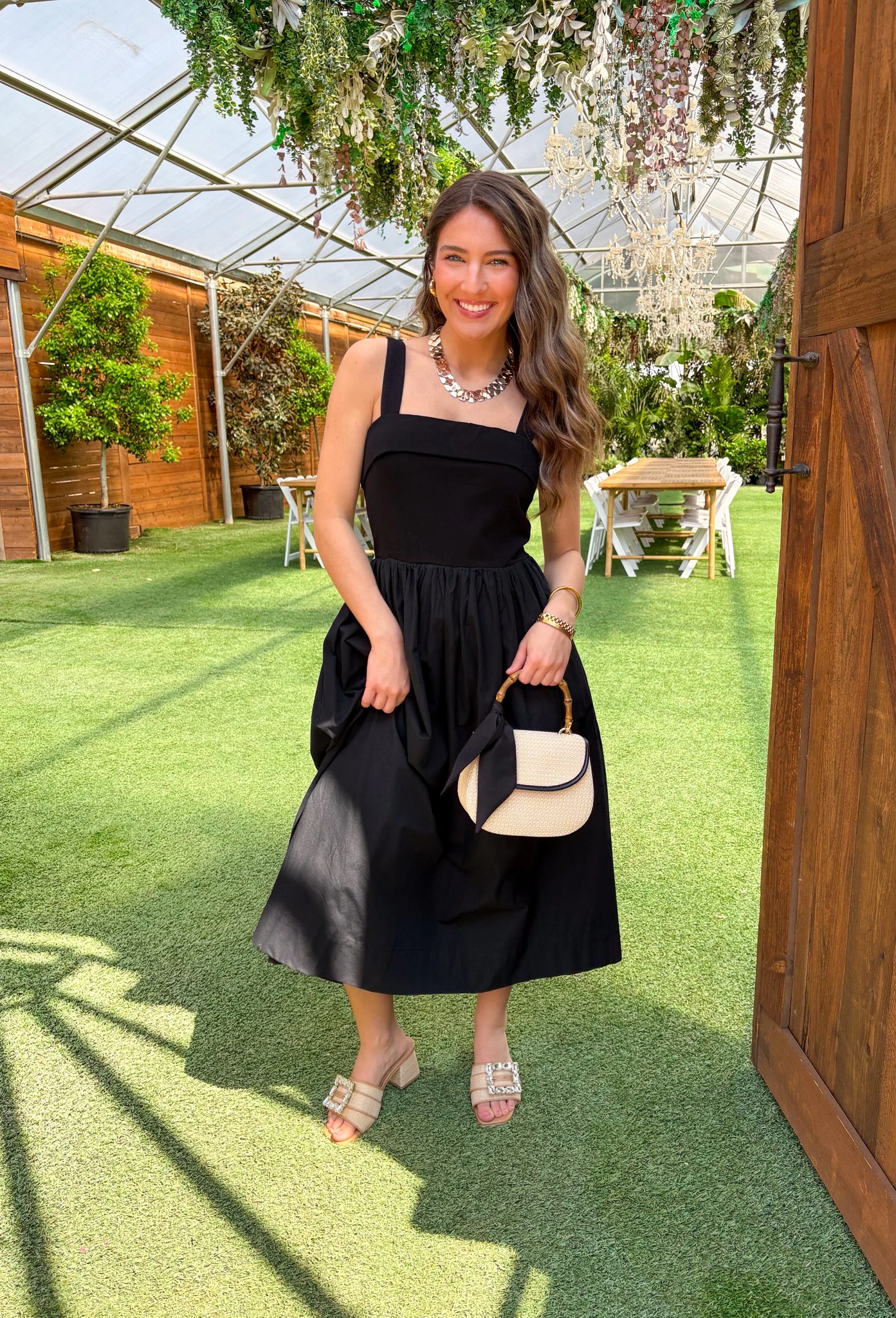 Every closet needs a little black dress, and the Midnight Stroll Midi Dress is here to steal the spotlight! With a flattering fold-over front detail, adjustable straps, and a comfy elastic waist, this dress effortlessly blends elegance with ease. Made with a soft and stretchy rayon-cotton blend, it’s perfect for date night, a wedding, or church. Style it with your favorite strappy heels and a bold clutch for a chic look that turns heads.