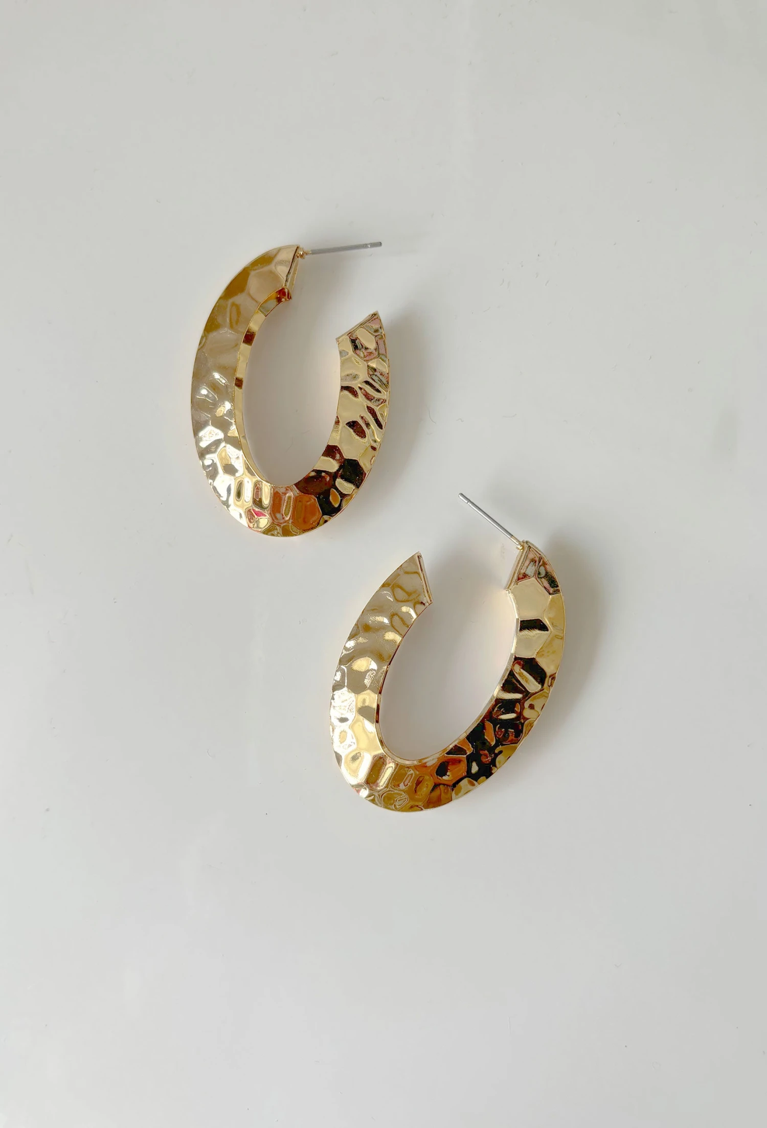 Make a lasting impression with these classic, chic gold hammered hoop earrings! Perfect for any occasion, they’ll add the perfect finishing touch to any outfit.