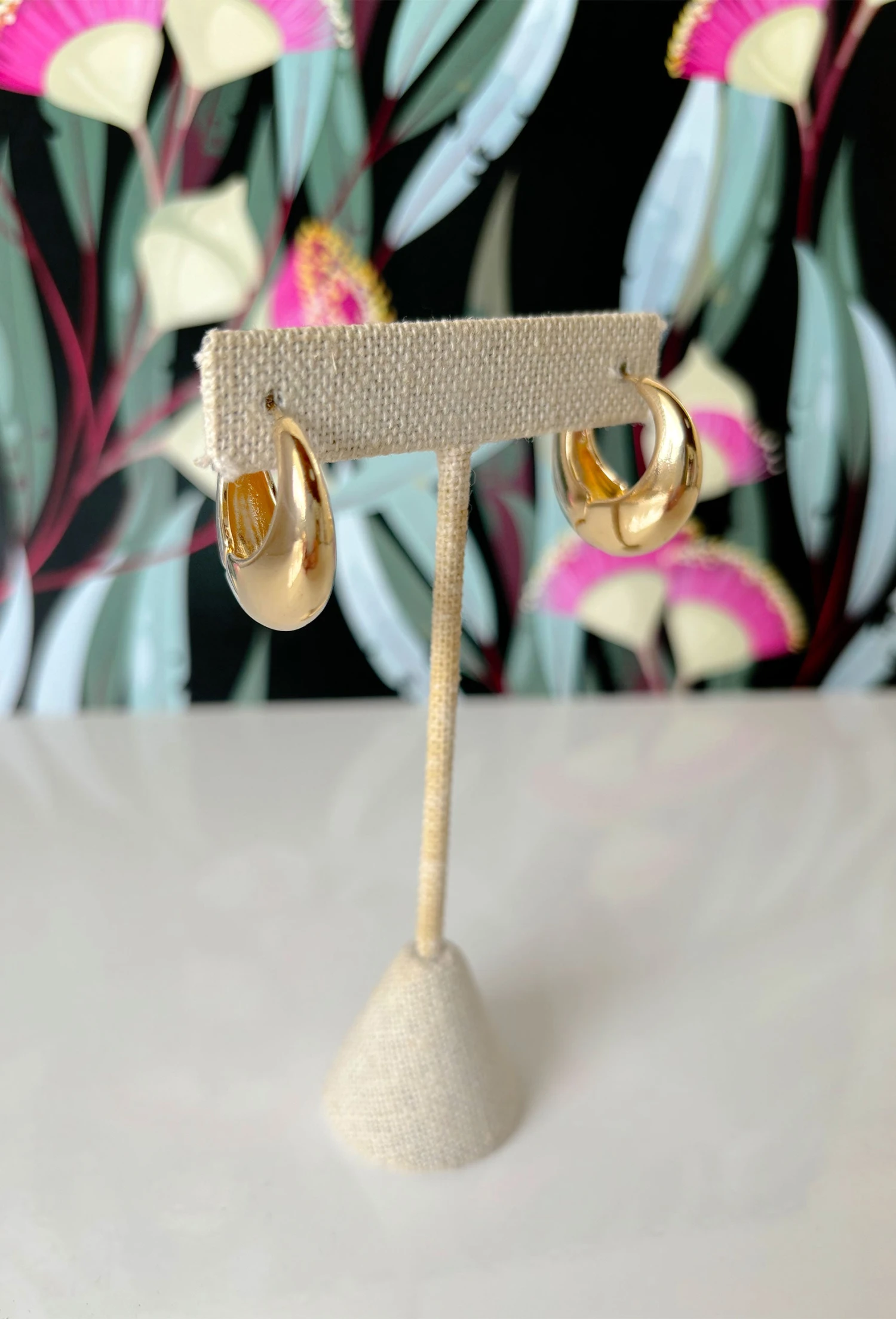 Elevate your jewelry game with these versatile and timeless gold hoop huggie earrings that are destined to become your go-to accessory. No matter the occasion, these earrings are the perfect pick.