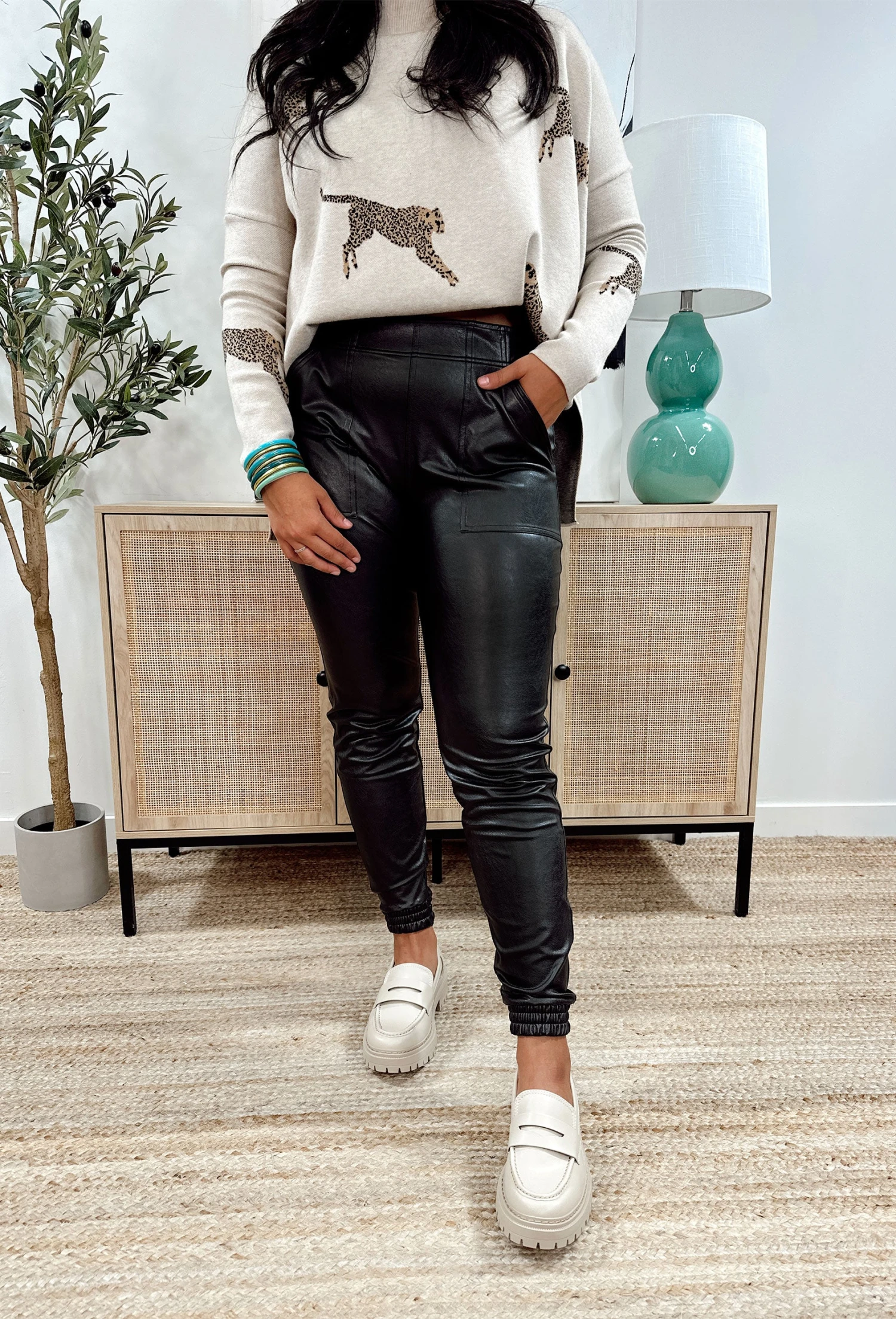 The Leather-Like Jogger is sure to be a new staple in your wardrobe. Leather-like fabric is more structured and gives you the look of true leather, without sacrificing comfort. You won’t just “like” them… you’ll love them!