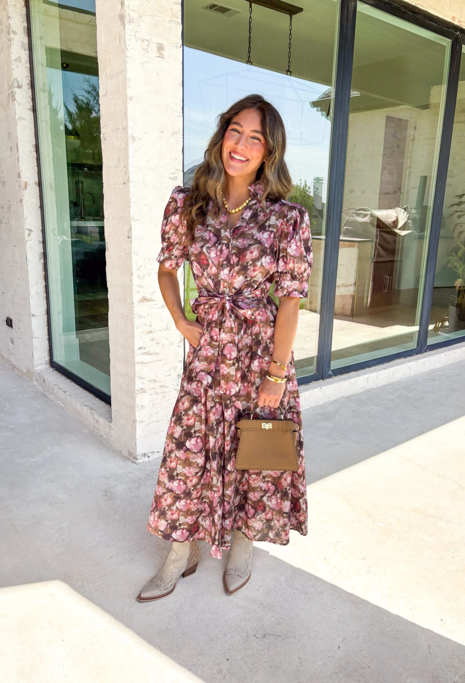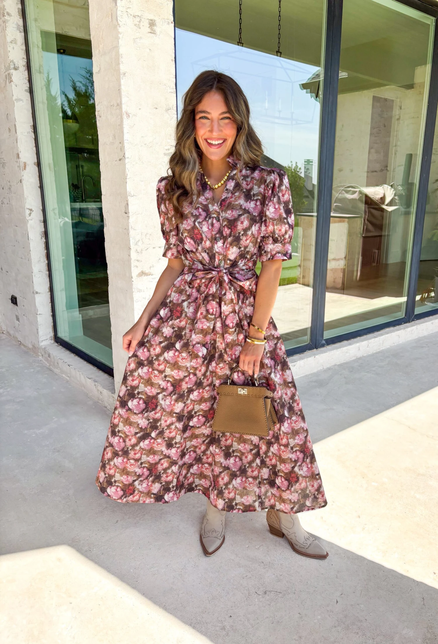 A charming fall favorite, this floral midi dress is just what your autumn wardrobe needs! Featuring a flattering puff sleeve and vintage-inspired button front, it’s perfect for pumpkin patch days, special occasions, and everything in between. The soft cotton feel and adjustable waist give it comfort and style in one dreamy silhouette.