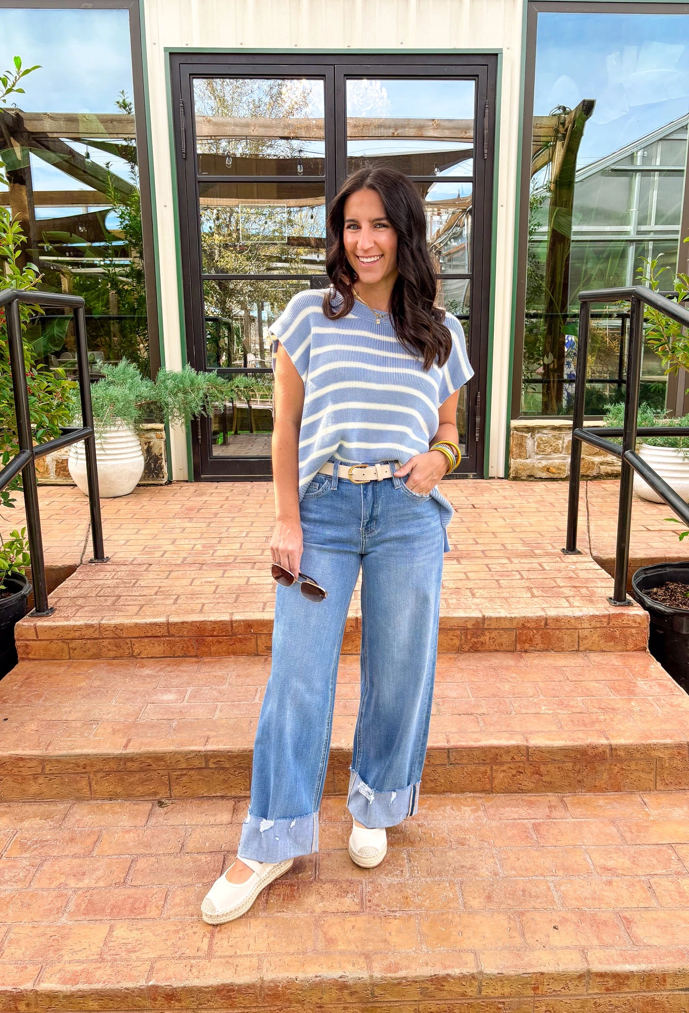 - Style Tip: Pair with Never Last Short Sleeve Sweater in Blue & Wynna Espadrille Mary Jane Flats to complete your look