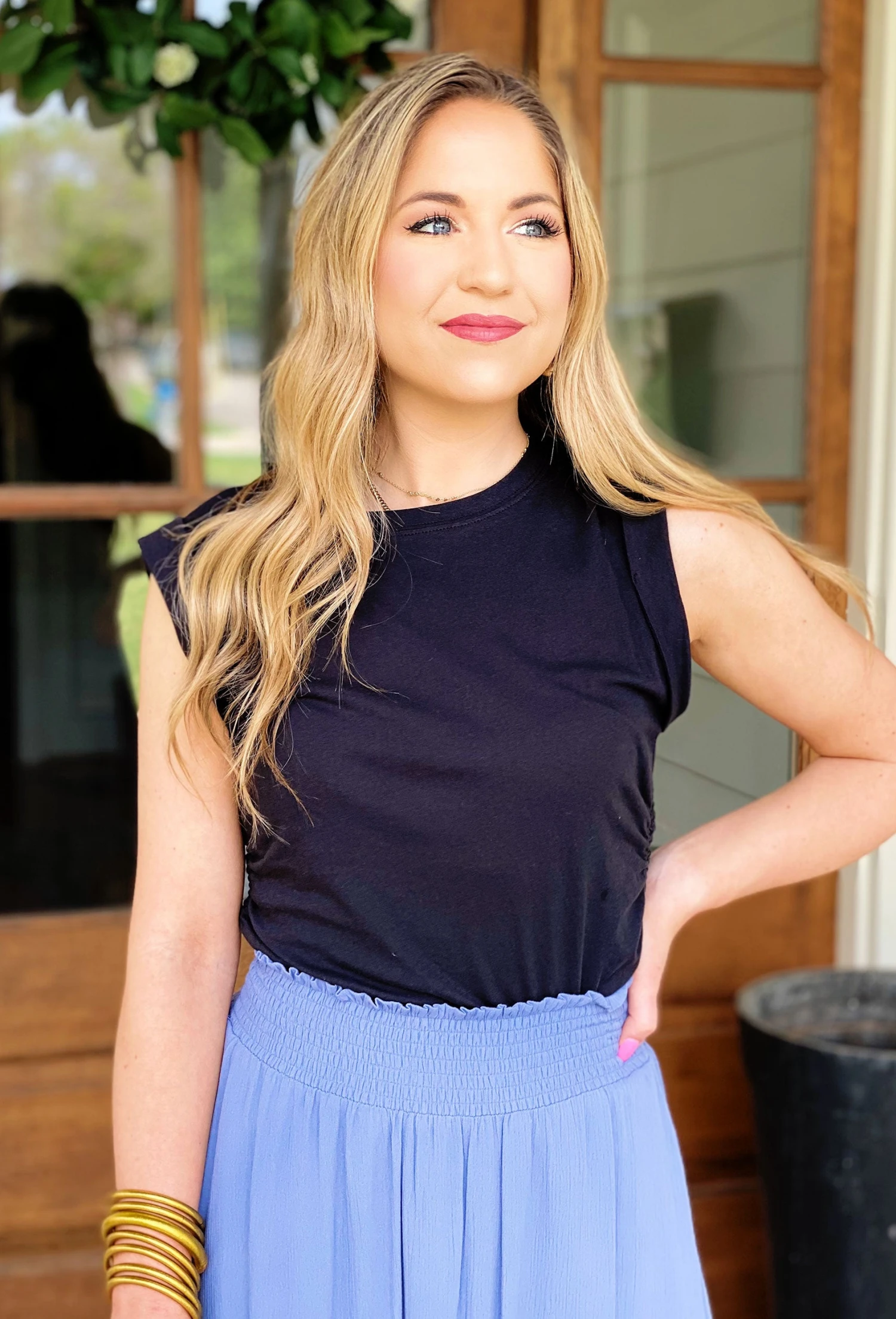 Made using our soft Whisper Cotton Jersey fabric, this crew neck tee features cuffed, open sleeves and encased elastic at the side seams to get a shirring effect. You will be reaching for this top all season long!